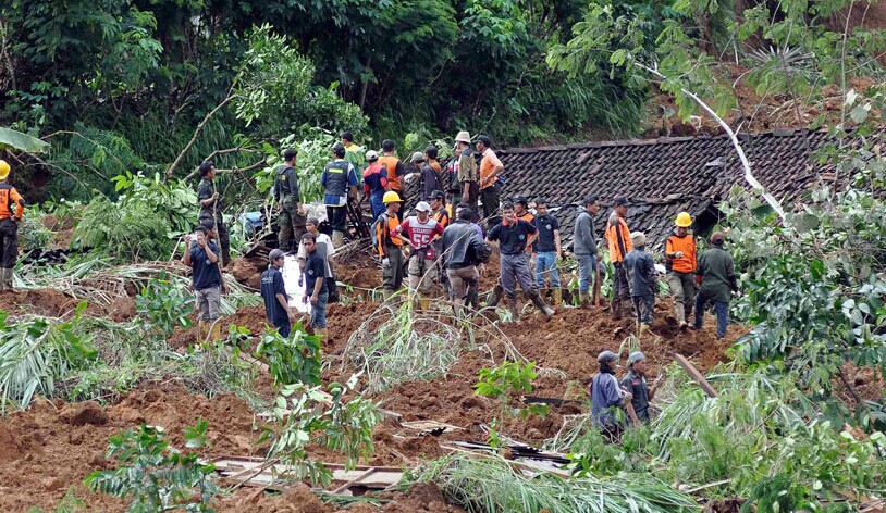 每年11月至次年4月是印尼的雨季,由强降雨和洪水引起的山体滑坡多发。印尼国家抗灾署估计,全国2.5亿人口中,大约一半人居住在山体滑坡易发地区。图为泥石流事故现场。