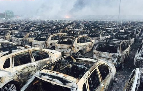 天津港爆炸烧毁近4000辆进口轿车