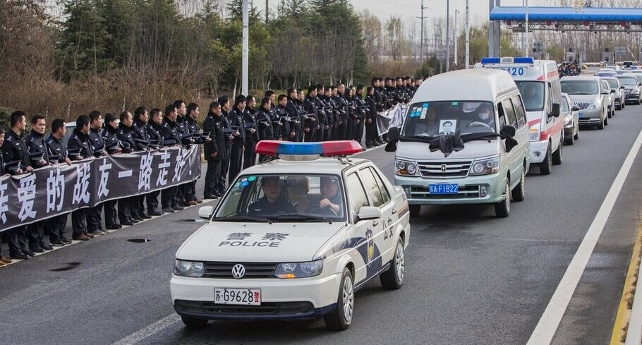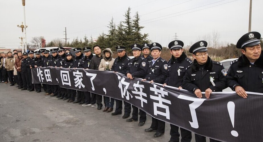 15日清晨6时,数以千计的社会各界群众赶到连云港赣榆殡仪馆,拿着“作田,回家了,你辛苦了”的标语为警察张作田送行。张作田是连云港市赣榆区公安分局治安大队户政中队中队长。12月10日,他在南京执行公务时突发心肌梗死,经抢救无效因公牺牲,年仅38岁。