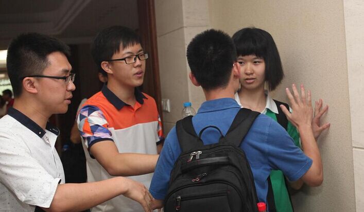 和往年的记者发布会不同,这次发布会现场,除了家长和老师之外,在全省理科前十名的考生叶彤的左右出现了两名神秘“大将”,神情严肃,整个发布会期间一言不发,始终站立在考生背后。事后记者才知,这两名“大将”便是北大和清华负责招生的工作人员。发布会一结束,两人就冲上前准备把考生“拉扯”走。“清华哥”先放话:“人是我带来发布会的,结束了就应该跟我走。”