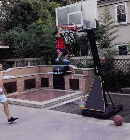 今日,田亮在微博上晒出一组与儿子一起打篮球的照片。照片中田亮将儿子高高抱起,让儿子完成一个漂亮的动作,有意思的是田亮本人也在照片中出镜了, 半裸身体的他仅穿着运动短裤与儿子一起运动健身。