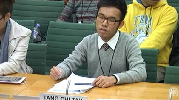 香港中文大学学生Tang Chi Tak在英国下议院“作证”
