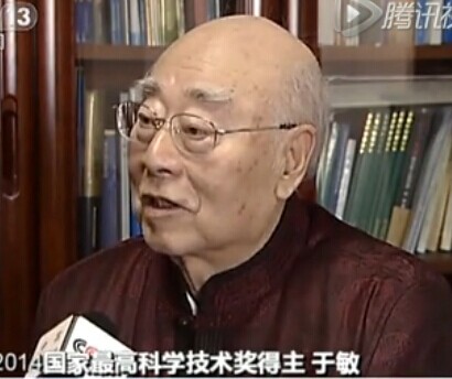 上午,中共中央总书记、国家主席、中央军委主席习近平向获得2014年度国家最高科学技术奖的中科院院士、中国工程物理研究院高级科学顾问于敏颁发奖励证书。
